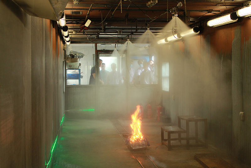 参观试验基地观摩细水雾系统灭火试验