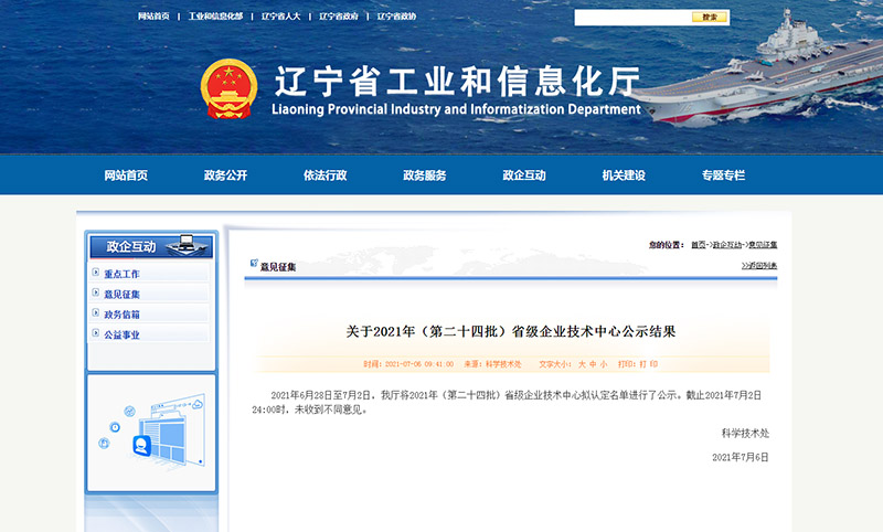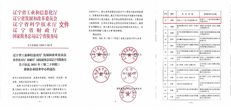 2021年6月28日,沈阳二一三电子科技有限公司被辽宁省工业和信息化厅认定为“省级企业技术中心”,这是我司继2020年被认定为沈阳市“市级企业技术中心”后,又一次在技术创新、科学研究能力上得到权威部门的认可。