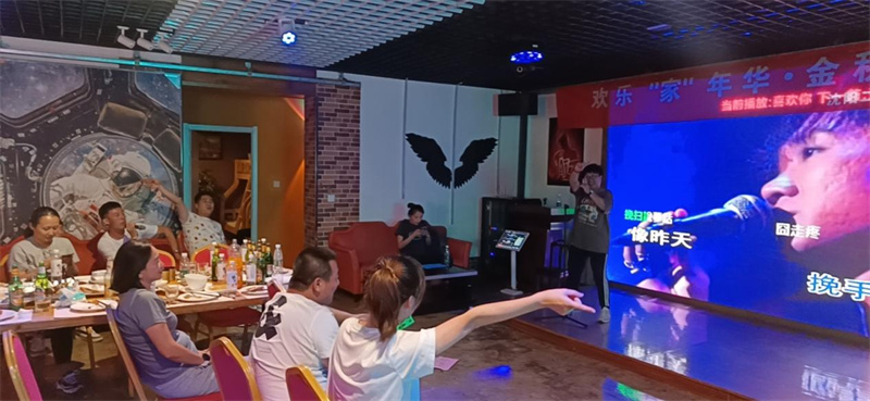 汤总在晚宴上与大家分享了今年共同创下的辉煌业绩,细数了今年成功签订的项目,鼓舞了所有二一三人。大家你一言我一语,一边享受美食,一边畅聊着工作和生活中的趣事,把酒言欢,夺麦演唱,正所谓“欢乐家年华,金秋聚轰趴”。