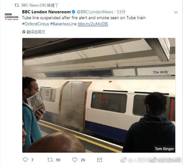 伦敦时间8月11日,上午8:50,英国伦敦市中心,牛津广场附近一列行驶的地铁列车因故障突然起火,车厢内浓烟四起。事发时正值早高峰,地铁上乘客较多,事发后,消防人员迅速赶到现场灭火,乘客随后被紧急疏散,4人因吸入浓烟感到不适接受了医治。