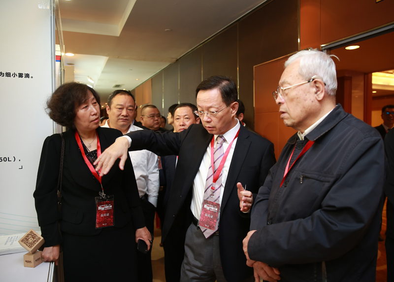 多位领导莅临我司展位,图为余光耀董事长与董会长探讨我司产品