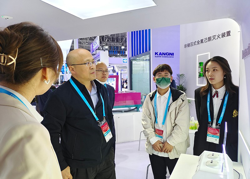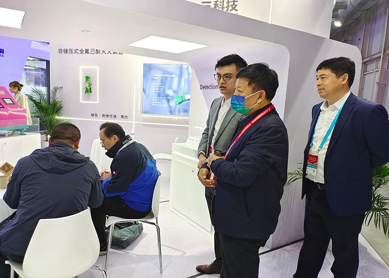 展会现场我司非储压式全氟己酮灭火系统得到了高度关注,该系统集探测、灭火和控制模块为一体,遇火情系统自动启动释放快速灭火,系统采用全氟己酮作为灭火介质,相比于传统的七氟丙烷,全氟己酮灭火浓度低、安全余量大、环保性能优良,此外,全氟己酮还具有绝缘性佳、释放无残留、不腐蚀等优势。