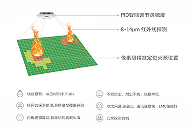我司自主研发的热能火灾器,在保证火灾报警准确率的前提下,将报警时间缩短到10秒以内并能精准定位火源位置,有利于初期火灾的发现与控制。是新一代适用轨道交通车辆的探测产品。