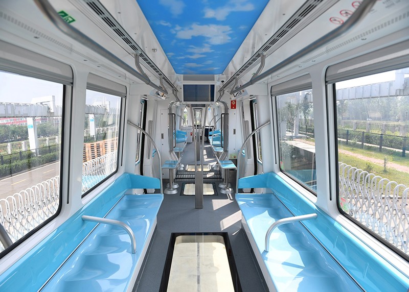 开展期间加装我公司细水雾灭控火系统的“光谷光子号”空轨列车在实车展区亮相,“光谷光子号”是国内首列商用悬挂式单轨列车,最高运行时速60公里,初期采用2节编组,部分车厢地板设置透明观景窗,全车拥有270°观景功能,同时车辆采用了多项先进科技,列车智能度和安全指数较高。