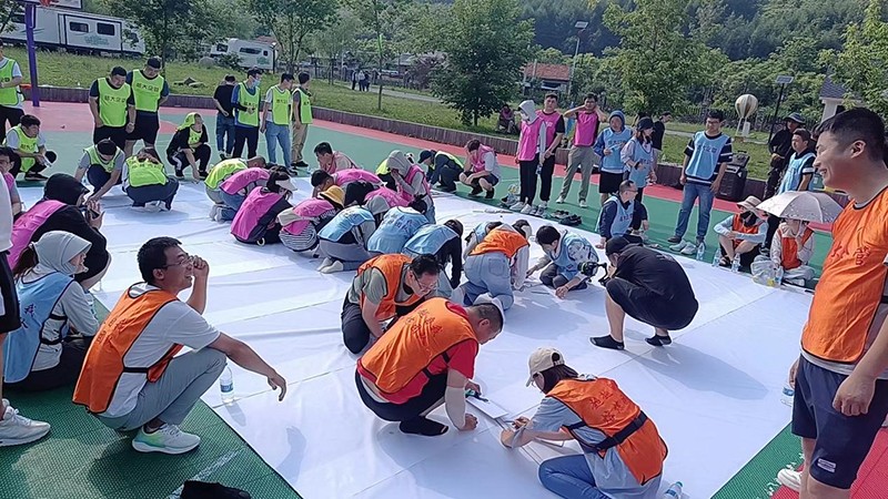 短暂而激烈的运动项目过后,各团队整齐划一。教练带领大家来到一块静谧而悠闲的场地,开始了本次活动的核心项目--纳斯卡巨画。
