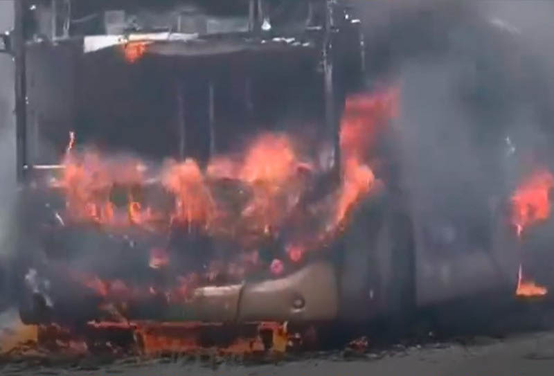 2023年8月20日11时42分许,在104国道南京花旗营段,一辆从安徽来安县开往林场站的城际公交车(皖M03799D),在行驶过程中突然起火。火焰瞬间在车厢内蔓延。惊慌失措的乘客纷纷抢着逃离现场。现场浓烟滚滚,烈火熊熊,短时间内大火把公交车烧得只剩下残破不堪的空壳。12时许,现场明火被扑灭。