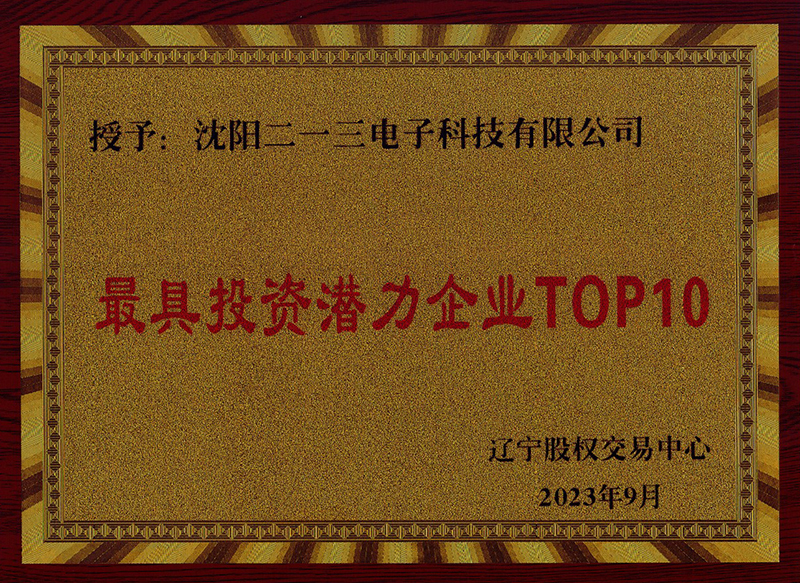 2023年4月,辽宁股权交易中心启动“寻找最具投资潜力企业”评选活动,评选活动历时近5个月,有百余家科技型企业报名参赛,经过线上测评、评委投票、初赛、复赛等多环节的筛选,最终我司在百余家企业中脱颖而出,荣获“最具投资潜力TOP10奖”。