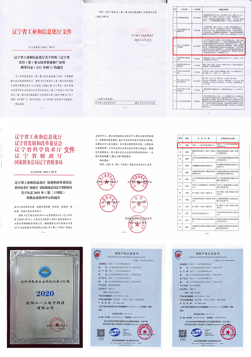 2021年,沈阳二一三电子科技有限公司深耕轨道交通事业,不断提升自身科技研发能力,实力突出揽获多项荣誉,企业影响力逐步提升。公司被评为沈阳市科技创新百强民营企业;公司研发中心被辽宁省工业和信息化厅评为辽宁省企业技术中心;公司产品“点型感温探测器”纳入辽宁省首台(套)重大技术装备推广应用指导目录(2021年版);取得“输入/输出模块”消防产品认证证书(3cf)、“消防联动控制器”消防产品认证证书。